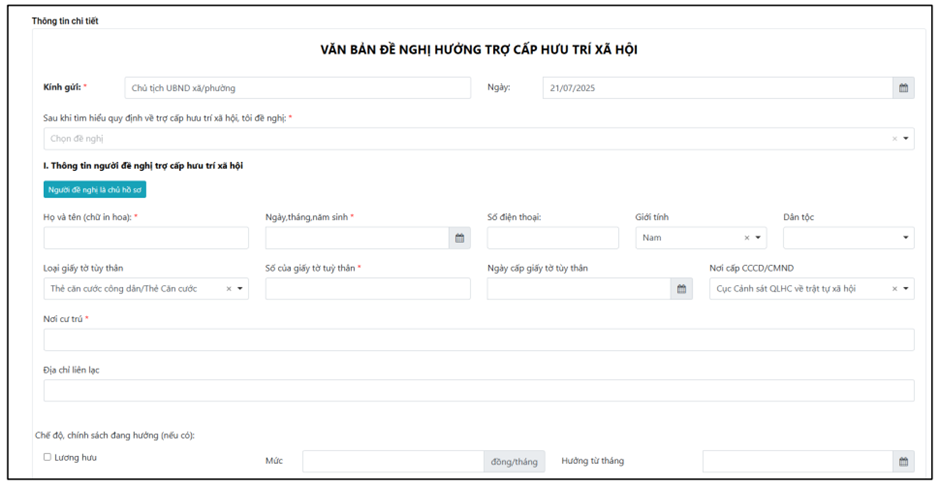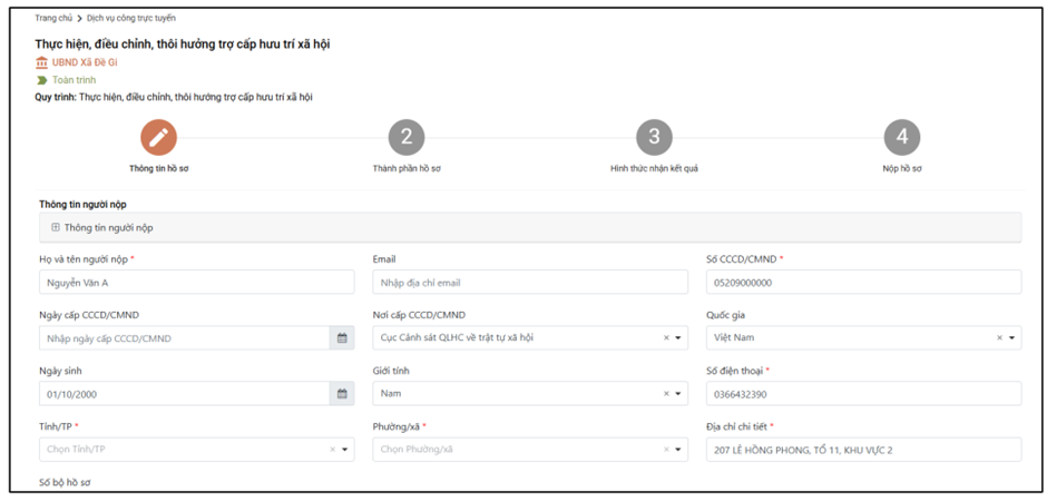 Sau đây là các bước thực hiện điều chỉnh thôi hưởng trợ cấp hưu trí xã hội, trên cổng thông tin Dịch vụ công quốc gia, dành cho công dân: