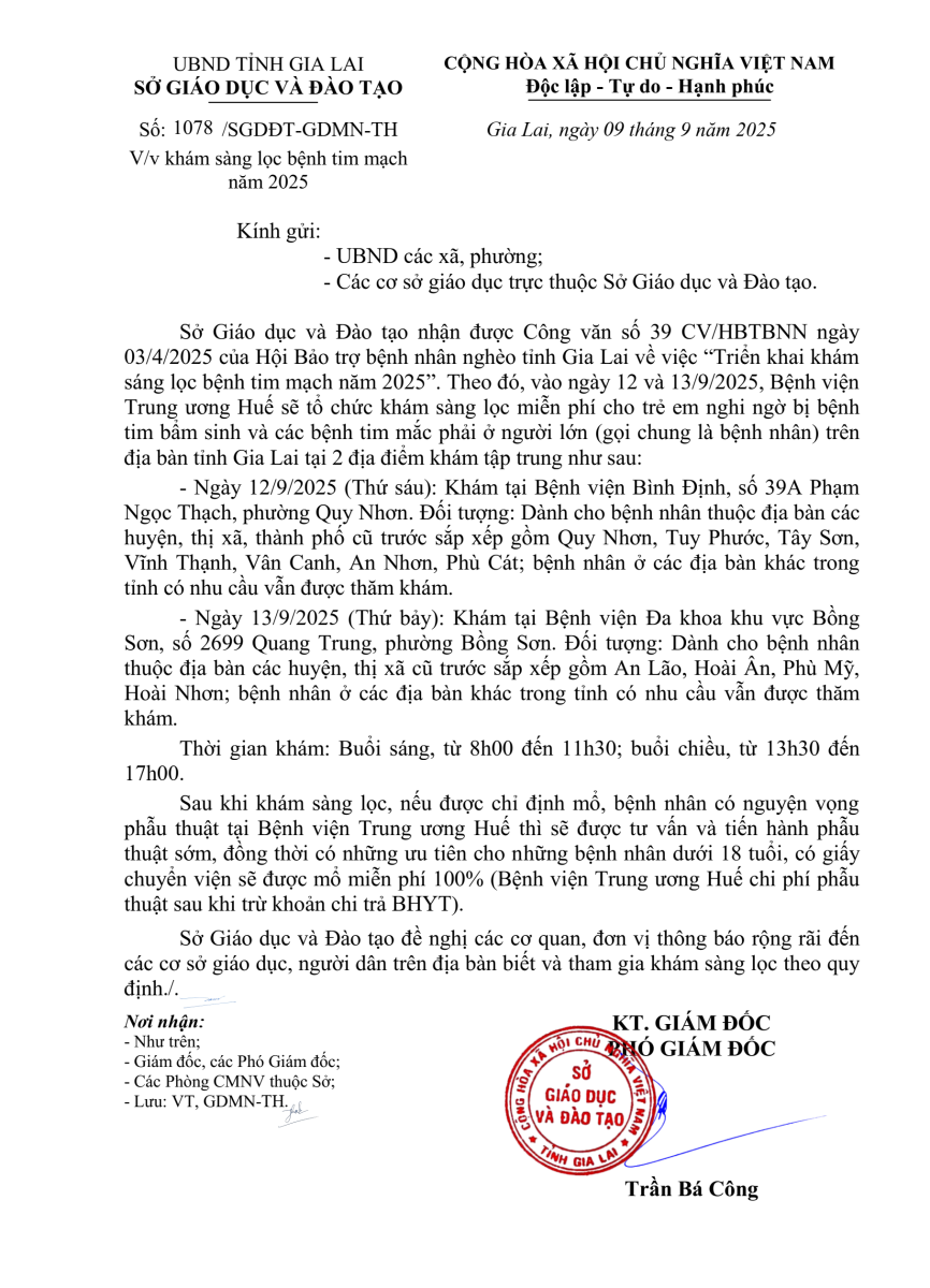 Thông Báo về việc "khám sàng lọc bệnh tim mạch năm 2025"