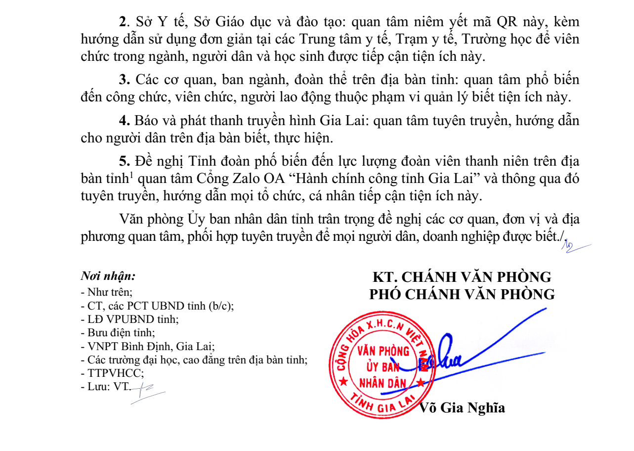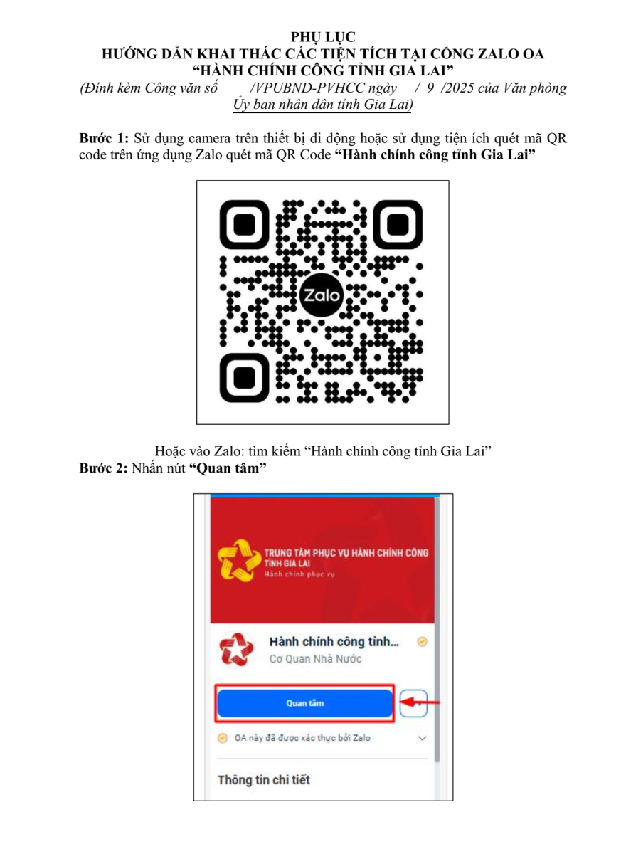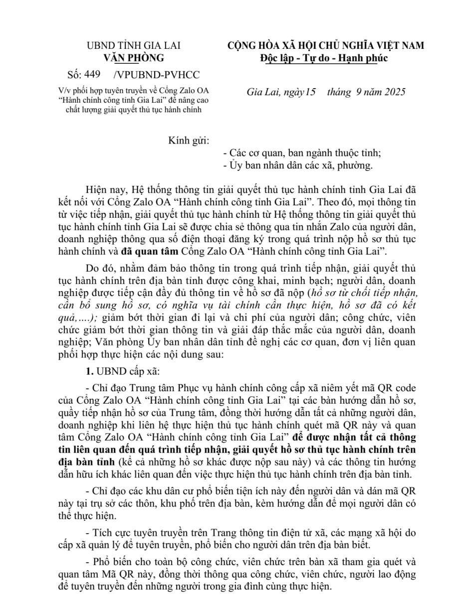 Thông báo về việc phối hợp tuyên truyền về Cổng Zalo OA “Hành chính công tỉnh Gia Lai” để nâng cao chất lượng giải quyết thủ tục hành chính
