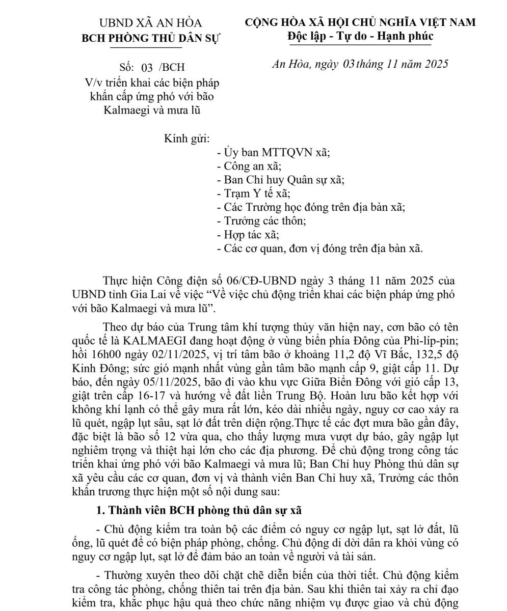 Thứ hai, 03/11/2025 | 16:55 A- A A+ | TRIỂN KHAI CÁC BIỆN PHÁP KHẨN CẤP ỨNG PHÓ VỚI BÃO KALMAEGI VÀ MƯA LŨ Chia sẻ Đọc bài Lưu