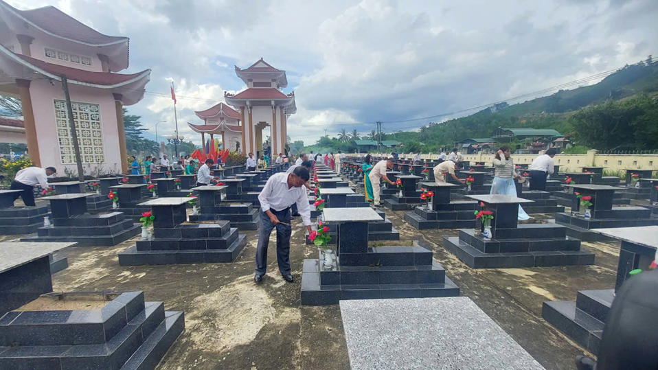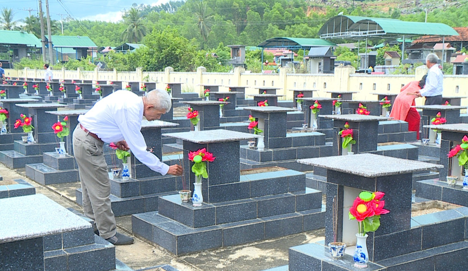 Sau nghi thức tưởng niệm, các đại biểu kính cẩn thắp hương tại từng phần mộ liệt sĩ, thể hiện đạo lý “Uống nước nhớ nguồn”, “Ăn quả nhớ người trồng cây” của dân tộc.