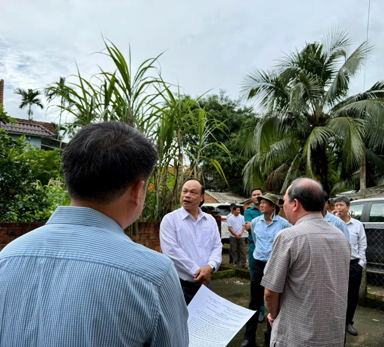 Đoàn đã đi kiểm tra thực tế khu dân cư Khu vực núi Đá, thôn Trà Cong; địa điểm dự kiến xây dựng Công trình: Khu tái định cư vùng thiên tai thôn Trà Cong và các địa điểm dự kiến bố trí chỗ ở cho Nhân dân khi có thiên tai xảy ra (Trường Tiểu học An Hòa 1, Trường THCS An Hòa, cơ sở làm việc của Chi cục Thuế (cũ)).