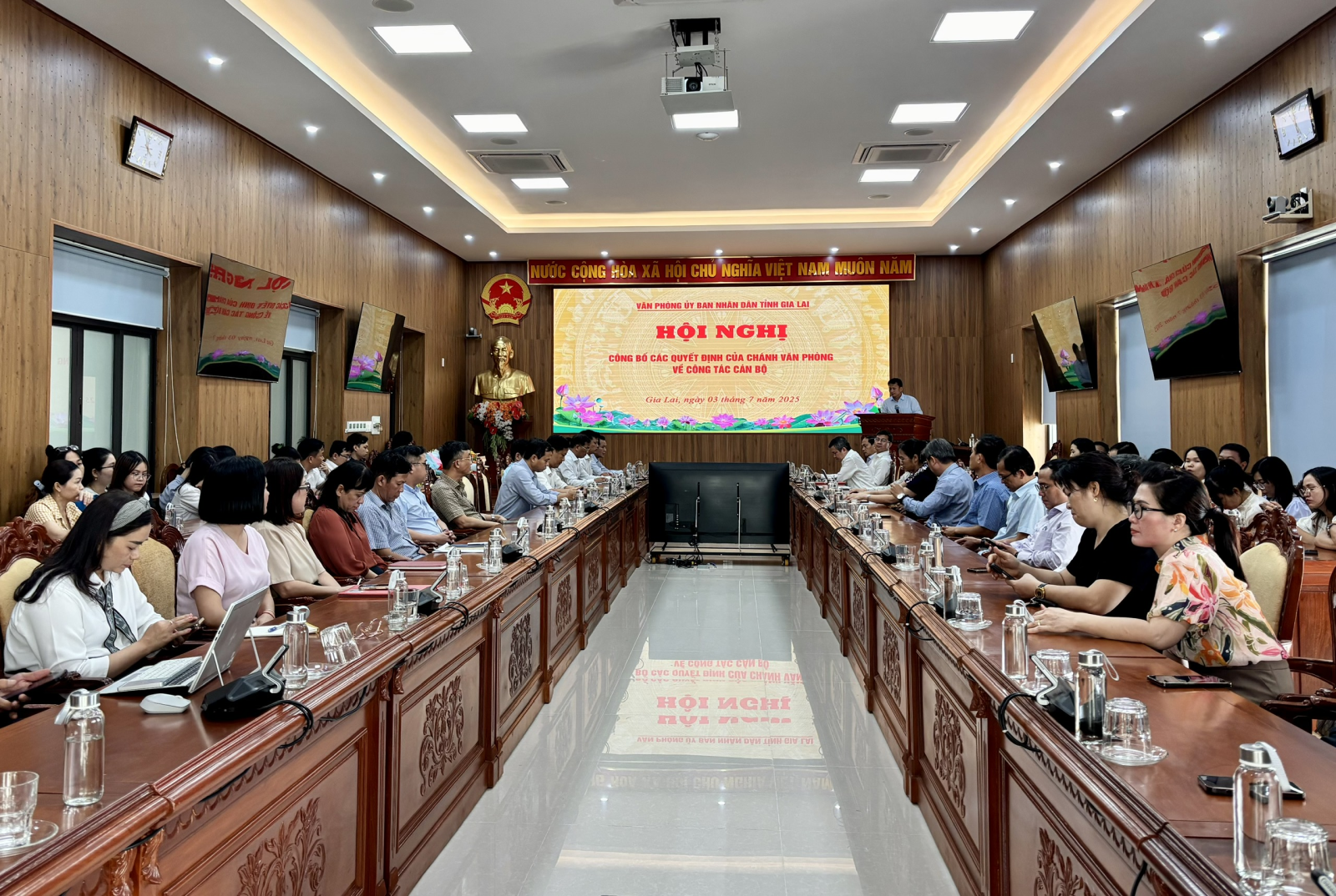 Chiều 03/7, Văn phòng UBND tỉnh Gia Lai tổ chức công bố các quyết định về công tác cán bộ sau khi thực hiện việc hợp nhất tổ chức bộ máy 02 Văn phòng UBND tỉnh.